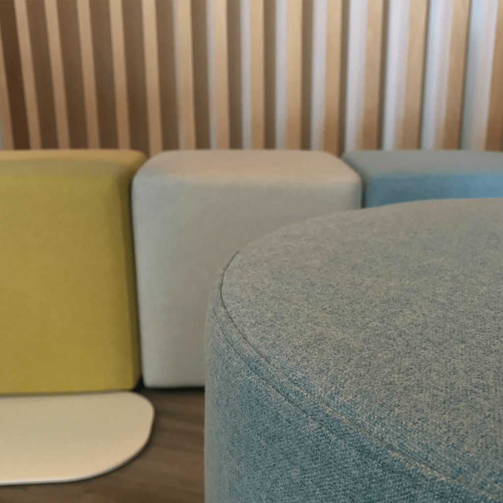 Raw apparaît carré et rond, permettant un meilleur cadrage dans l'environnement de configuration. Ce pouf fait partie de nos solutions Soft-Seating, reflétant la nouvelle dynamique des espaces de travail.